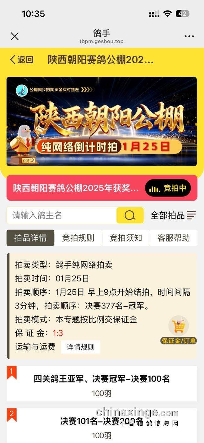 由于快手号被限制,剩余奖鸽全部在*鸽*手*平台纯网络拍卖形式拍卖,咨询电话13335411168同微信